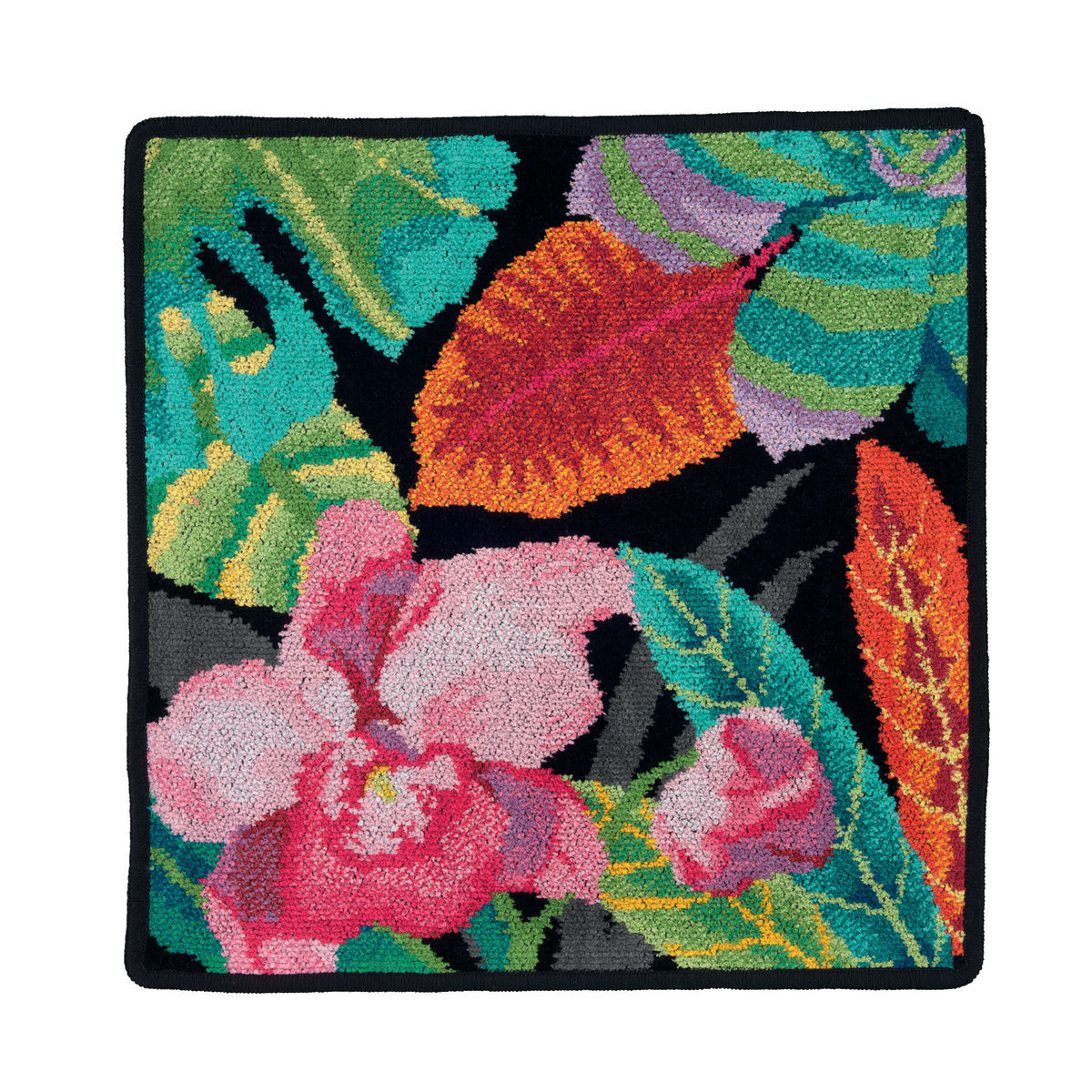 FEILER, extravagantes Seiftuch aus der Serie RAINFOREST mit exotischen Blüten & Blätter in multcolor mit schwarzem Rand auf schwarzem Grund. Das Tuch ist bei 60 ° waschbar und hat eine Größe von 30 x 30 cm. Made in Germany. Urlaub im eigenen Bad oder am Pool!