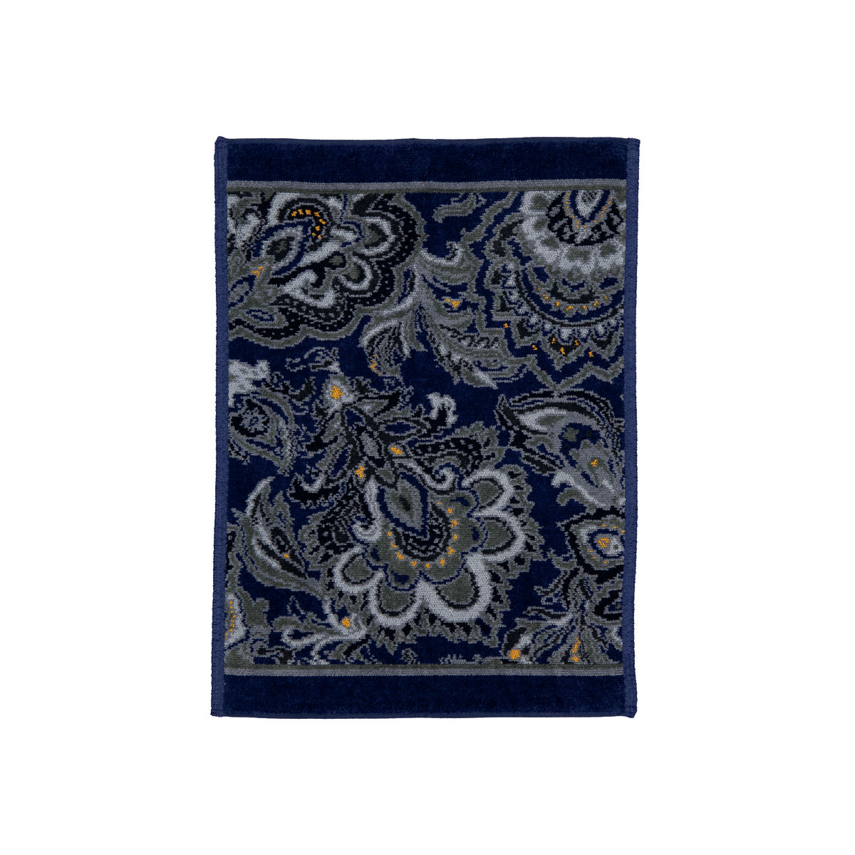 Klassischer Paisley ist das Motiv der samtweichen Handtuchserie DJAMAL in grau, hellblau und maisgelb auf dunkelblauem Grund. Das kleine Gästetuch von FEILER ist bei 60 ° waschbar und hat eine Größe von 37 x 50 cm. Made in Germany!