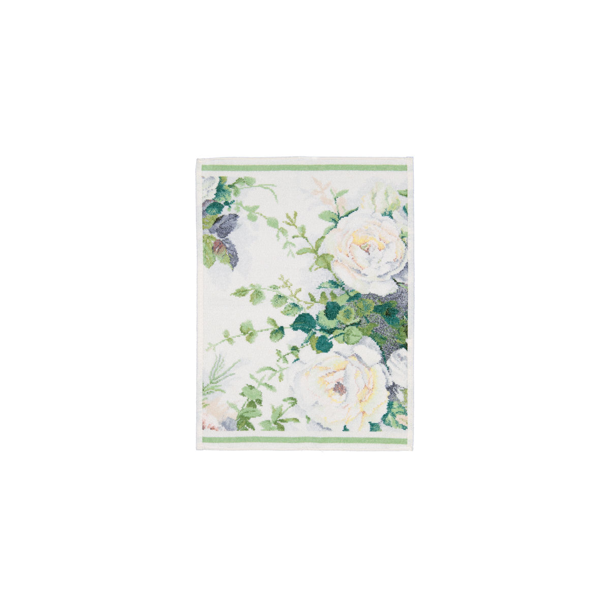 Ein modernes harmonisches Dessin von FEILER ist JULIETTE. Ein floraler Traum mit hellen Rosenblüten von Kräuer umgarnt in grün auf eierschalfarbenem Grund ist das Muster auf Seif - Gäste - Hand - Dusch - und Badetuch. Als Ergänzung ist ein Turban, kissenhülle und eine Wohndecke/Plaid erhältlich.