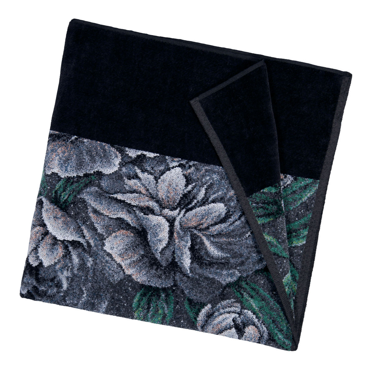 Ein besonderes Dessin von FEILER ist DARK PEONY. Mystische Harmonie: Üppige Pfingstrosen tanzen auf dunkler See. Grün mit graphit-grau ist das Muster auf Seif - Gäste - Hand - Dusch - und Badetuch. Als Ergänzung ist eine Kissenhülle und eine Wohndecke/Plaid erhältlich.