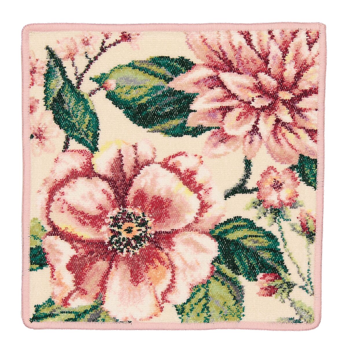 Das Gesichtstuch mit rosefarbenem Rand hat eine Größe von 30 x 30 cm und ist bei 60° C waschbar.