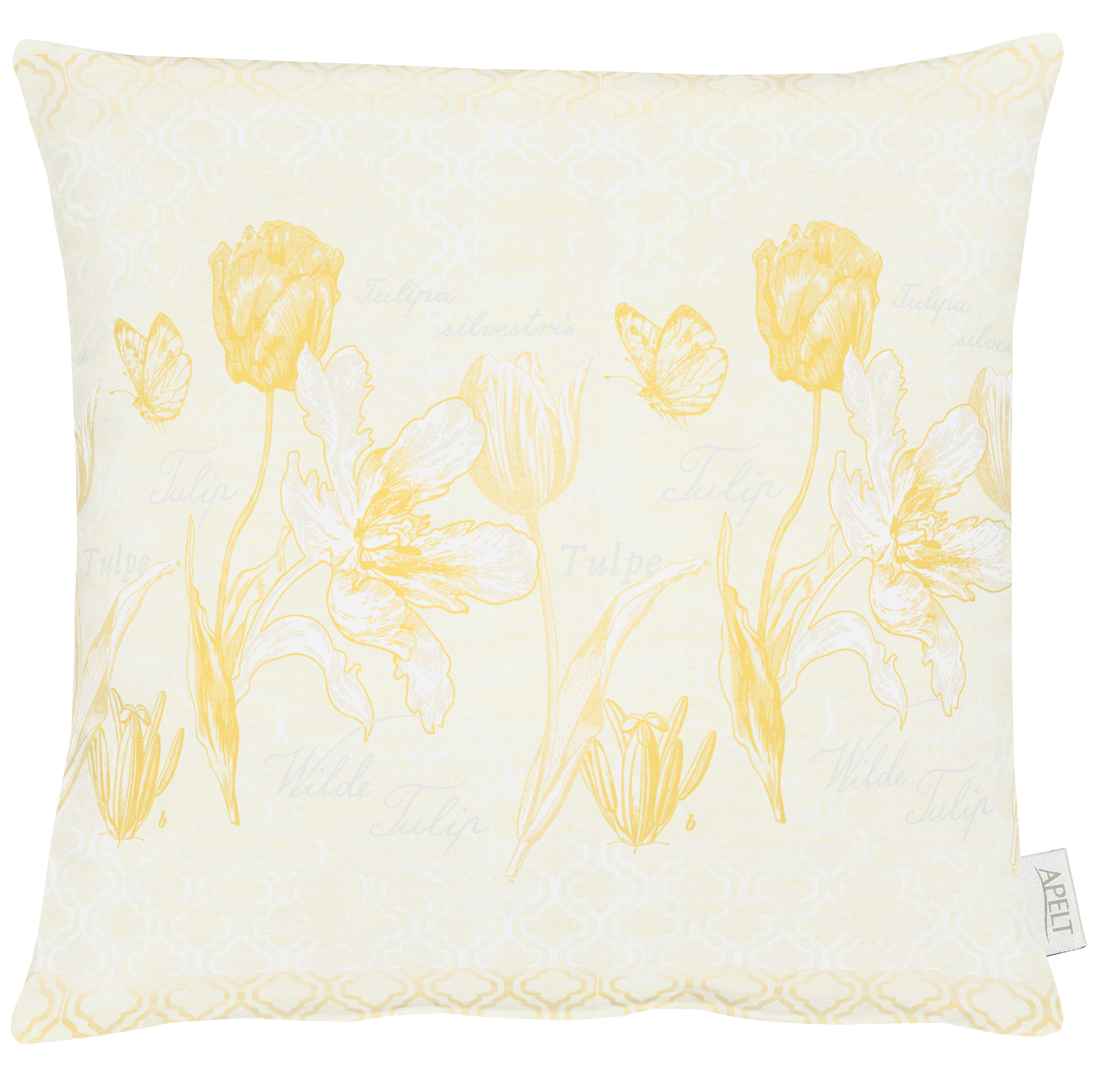 APELT, Kissenhüllen - Set ( 2 Stück ) mit eingewebtem Tulpenmotiv in pastell - gelb. Die Hülle hat eine Größe von ca. 50 x 50 cm, 70 % PES / 30 % CO, bei 30° waschbar und nicht trocknergeeignet.