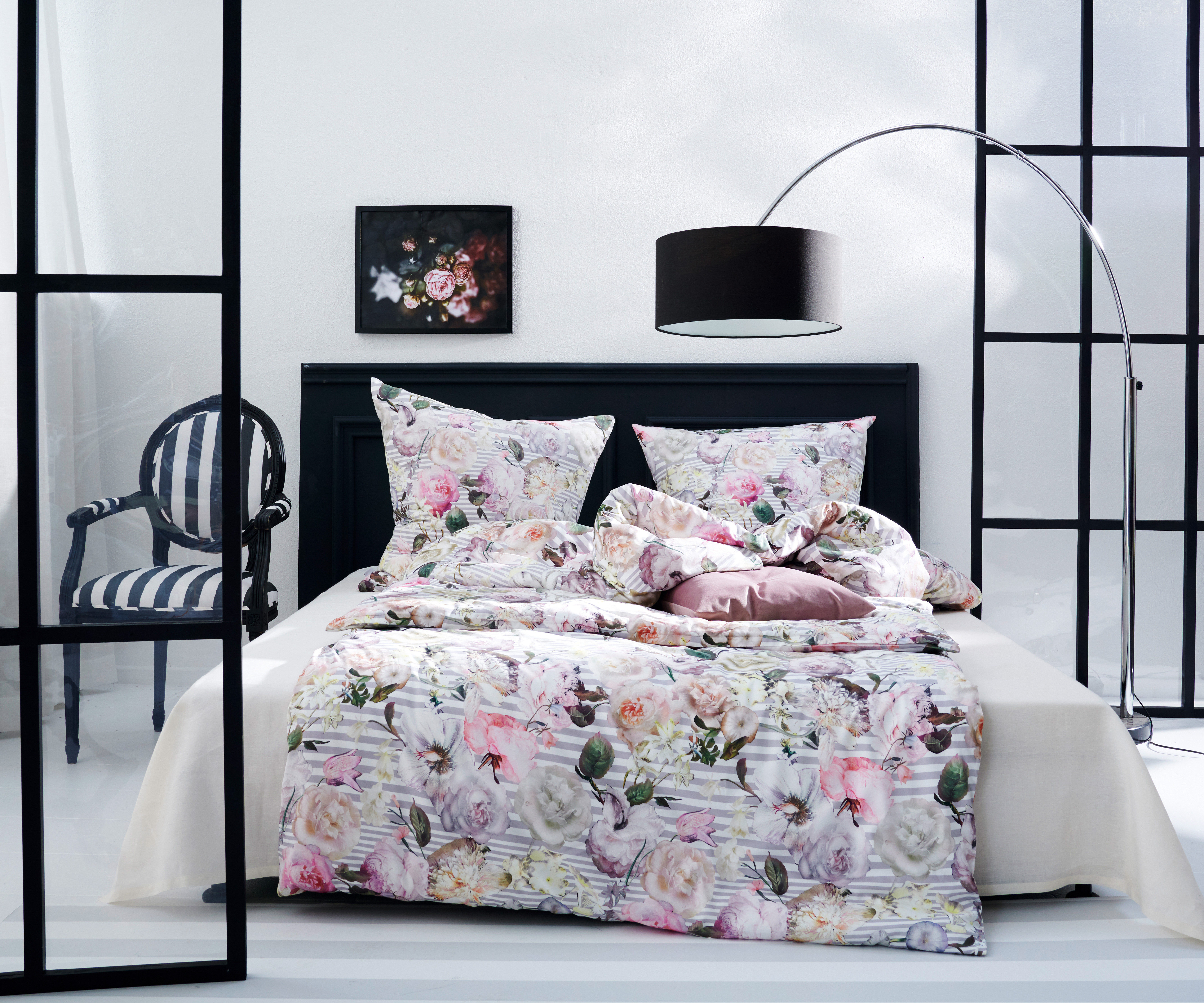 Als Ergänzung sind Kissenhüllen in drei Größen, Stuhlkissen, Tischläufer und eine Mitteldecke erhältlich. In der Farbe 88 ist das Rosenmuster auch als Bettwäsche erhältlich.