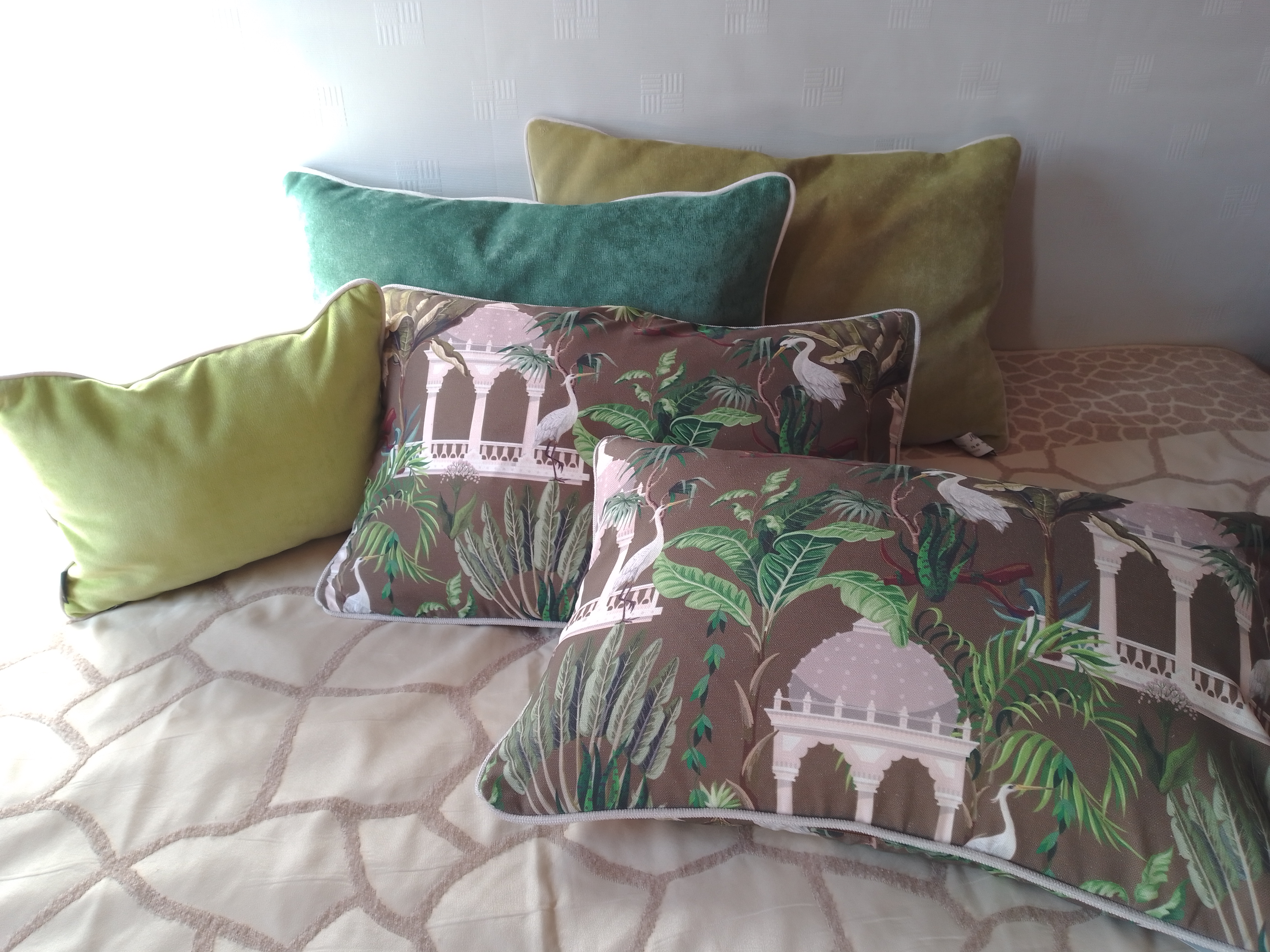 Jede Kissenhülle hat einen anderen Musterausschnitt der Meterware.