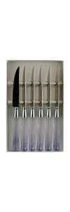 Steakmesser - Set aus der Besteckserie VENUS vom französischen Hersteller CAPDEKO. Das Set besteht aus 6 Messer mit einem transparenten kristallartigem Griff. Die Bestecke des französischen Herstellers sind aus Acryl und aus rostfreiem Stahl und sind spülmaschinenfest. Es ergänzt stilvoll antikes wie auch modernes Porzellan. Außerdem passt es zu jeder farbigen Tischwäsche und ist zeitlos schön.