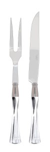 Tranchier - Besteck ( 2 Teile ) aus der Besteckserie VENUS vom französischen Hersteller CAPDEKO. Das Set besteht aus einer Gabel und einem Messer mit einem transparenten kristallartigem Griff. Die Bestecke des französischen Herstellers sind aus Acryl und aus rostfreiem Stahl und sind spülmaschinenfest. Es ergänzt stilvoll antikes wie auch modernes Porzellan. Außerdem passt es zu jeder farbigen Tischwäsche und ist zeitlos schön.