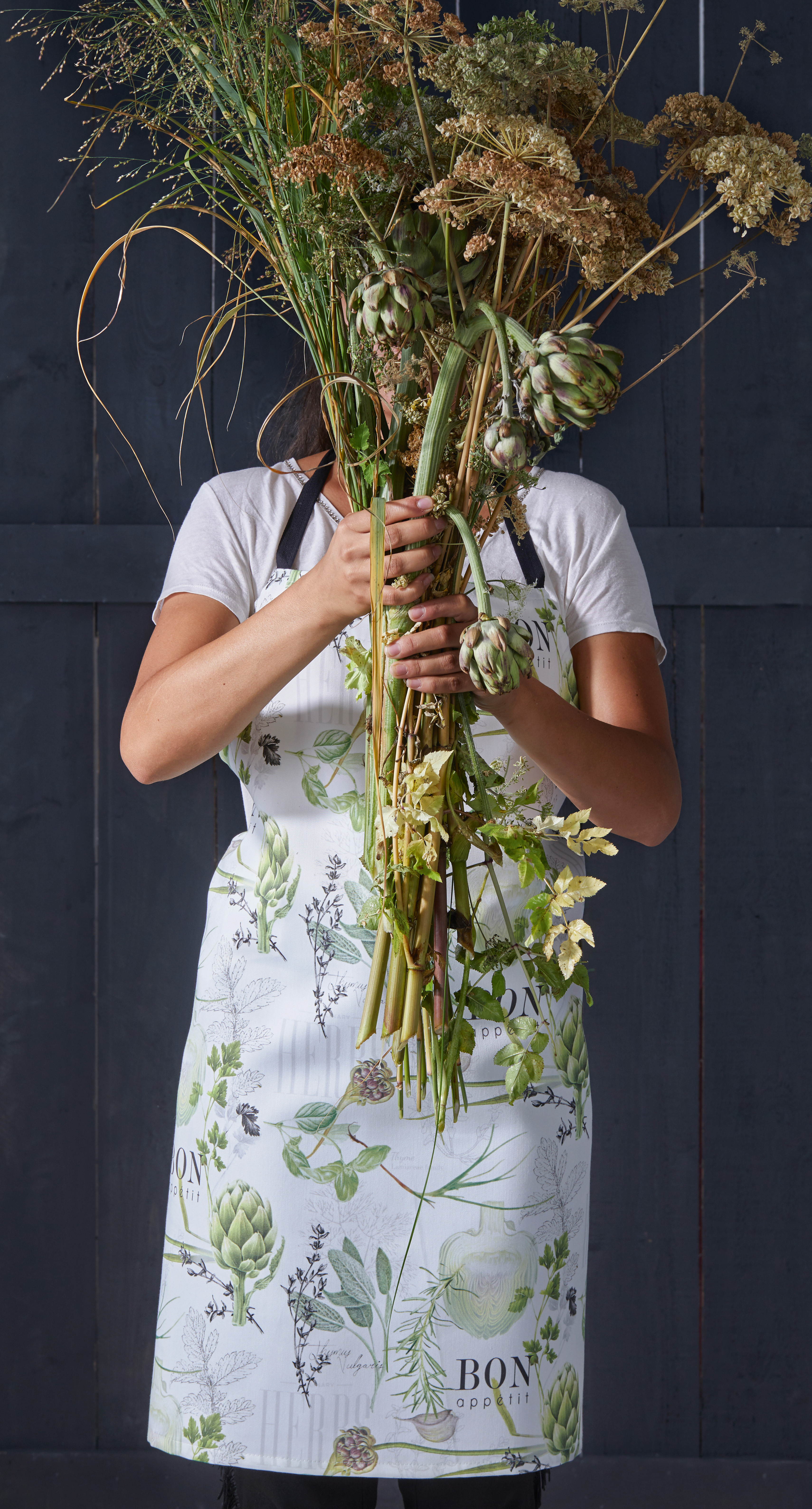 Die Schürze aus der Serie SUMMER GARDEN mit verschiedenen Kräutern als Motiv läutet den Sommer ein. Ein Digitaldruck von APELT aus 100 % Baumwolle. Sie hat eine Größe von 80 x 85 cm, bei 30° waschbar, nicht trocknergeeignet. Tischwäsche und mehr für den Sommer kommt von APELT.