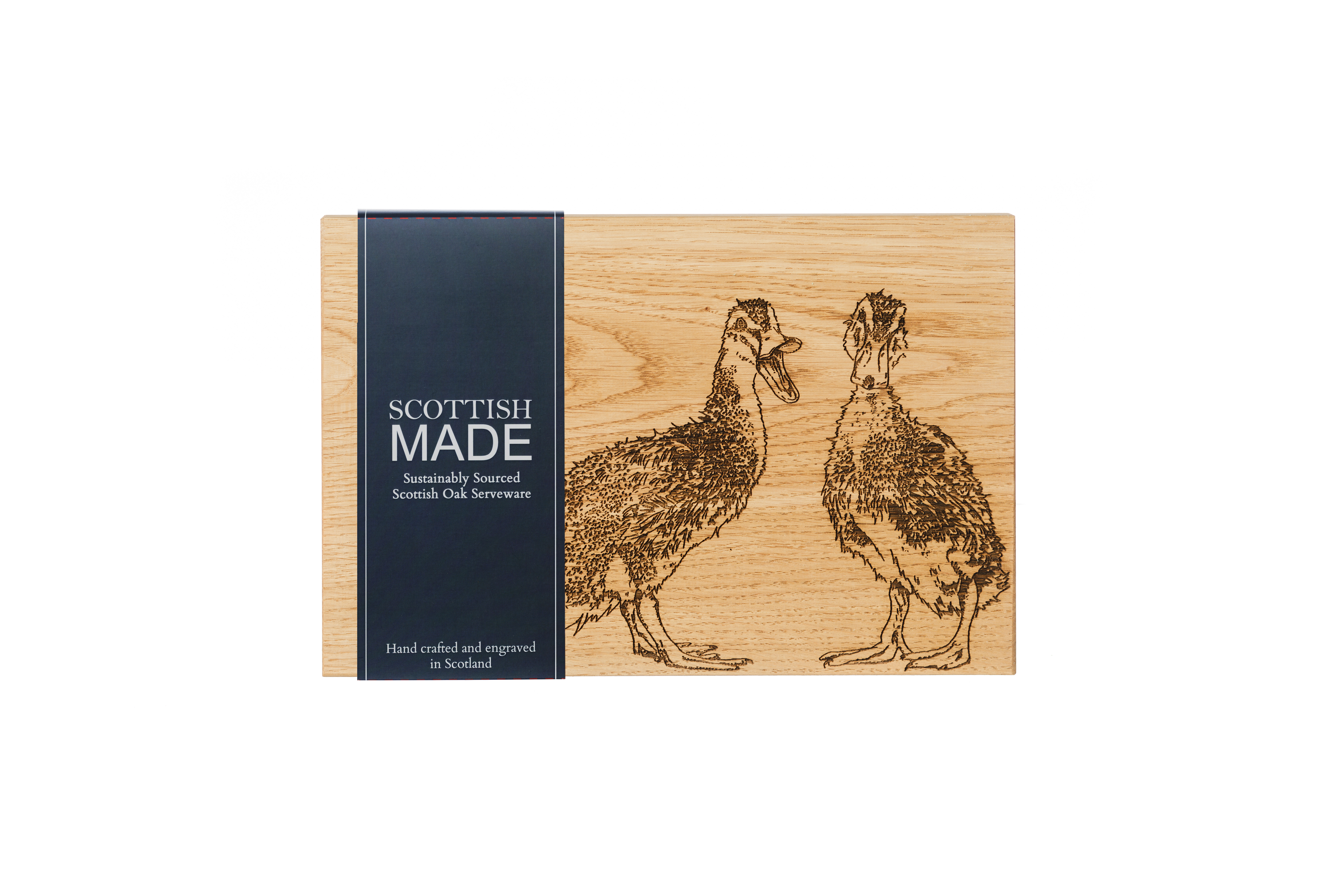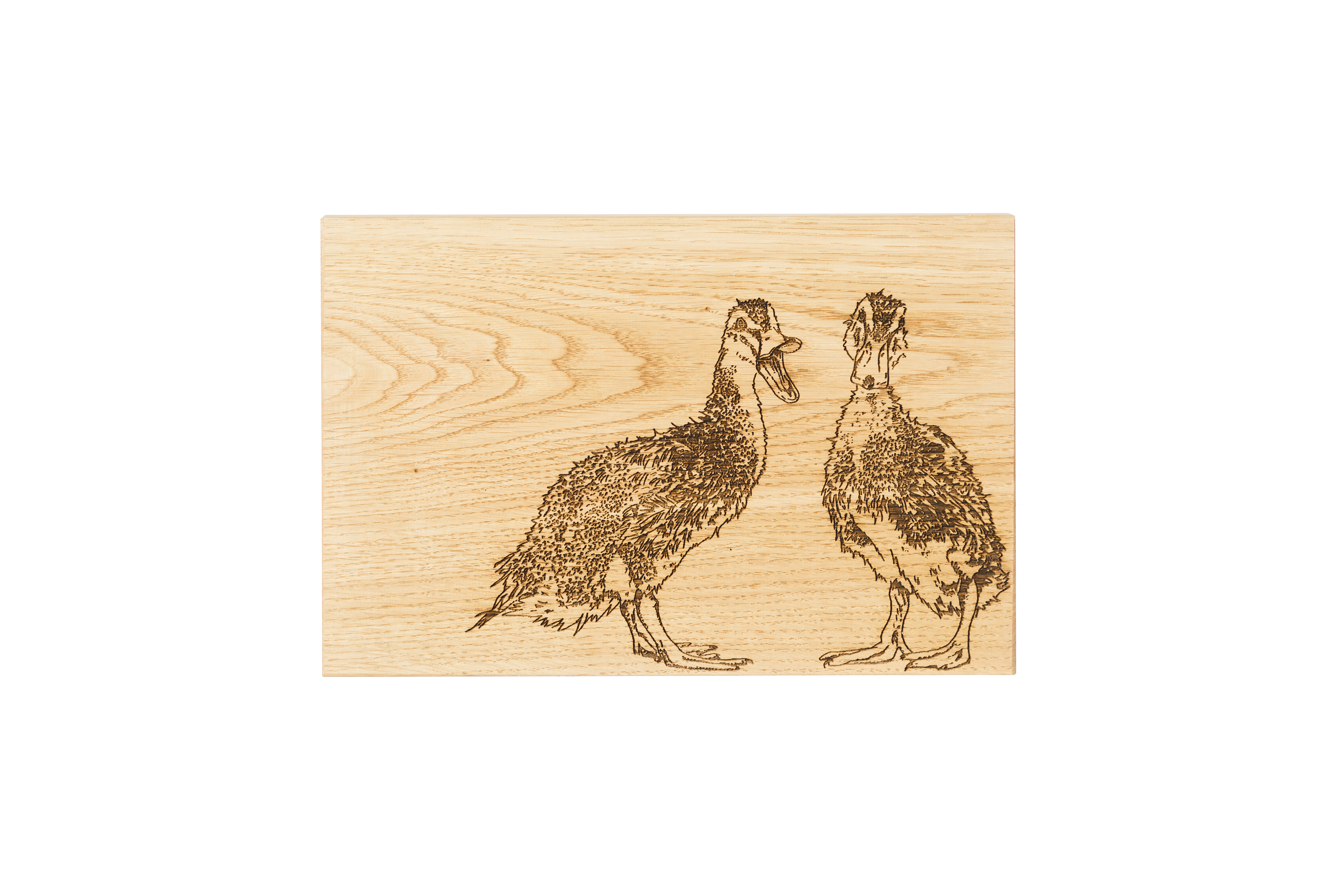 Das rustikale Brot - oder Schneidbrett hat als Motiv ein schnatterndes Entenpaar. Es hat eine Größe von 30 x 20 x 2,5 cm. Das attraktive Brett ist lebensmittelecht. Narürlich antibakteriell. Jedes Holzbrett ist ein UNIKAT!