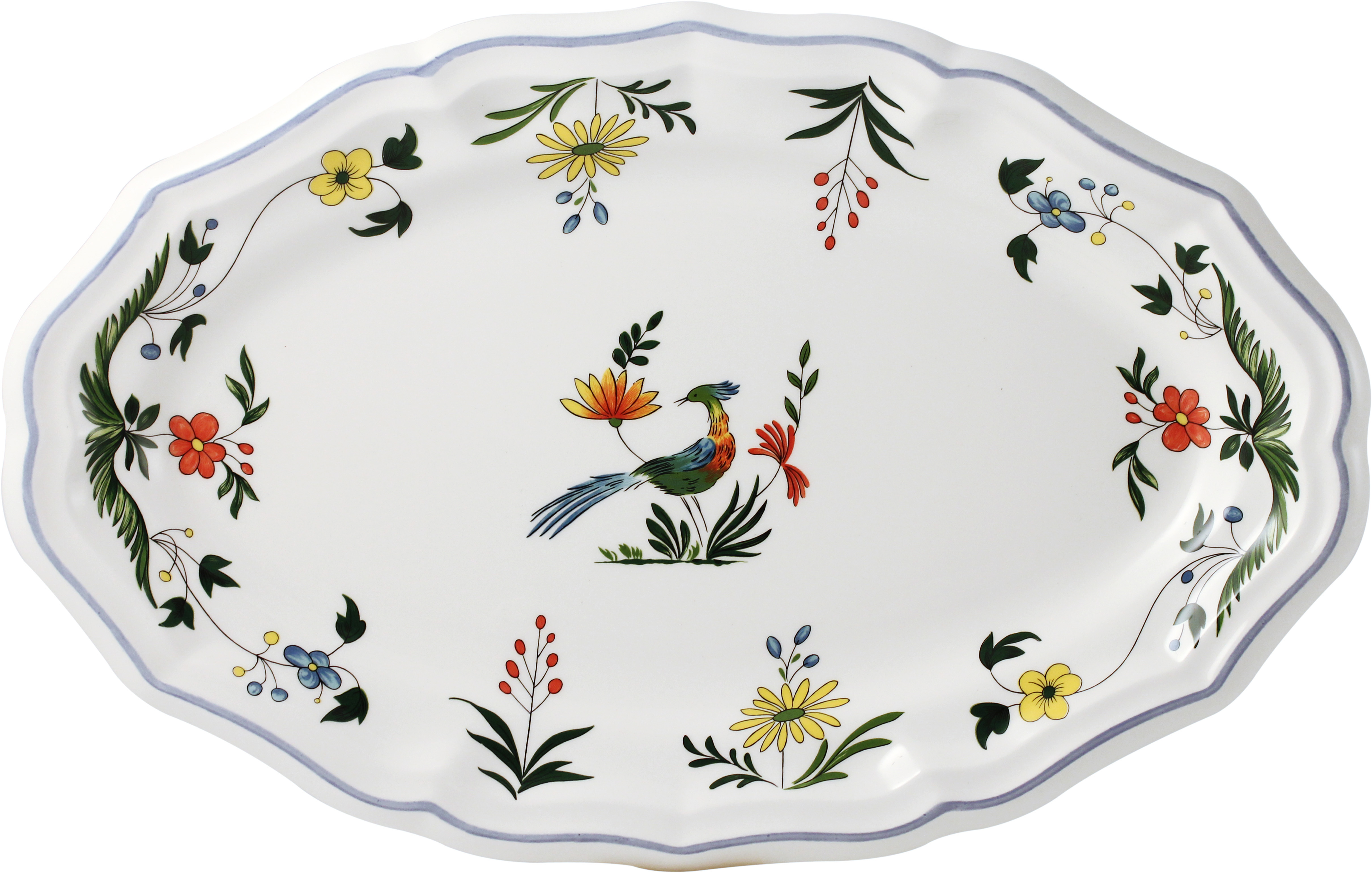 Große ovale Platte aus der Serie OISEAUX DE PARADIS. Die Platte hat eine Größe von 41 x 26,2 cm. Klassisches französisches Landhausgeschirr.