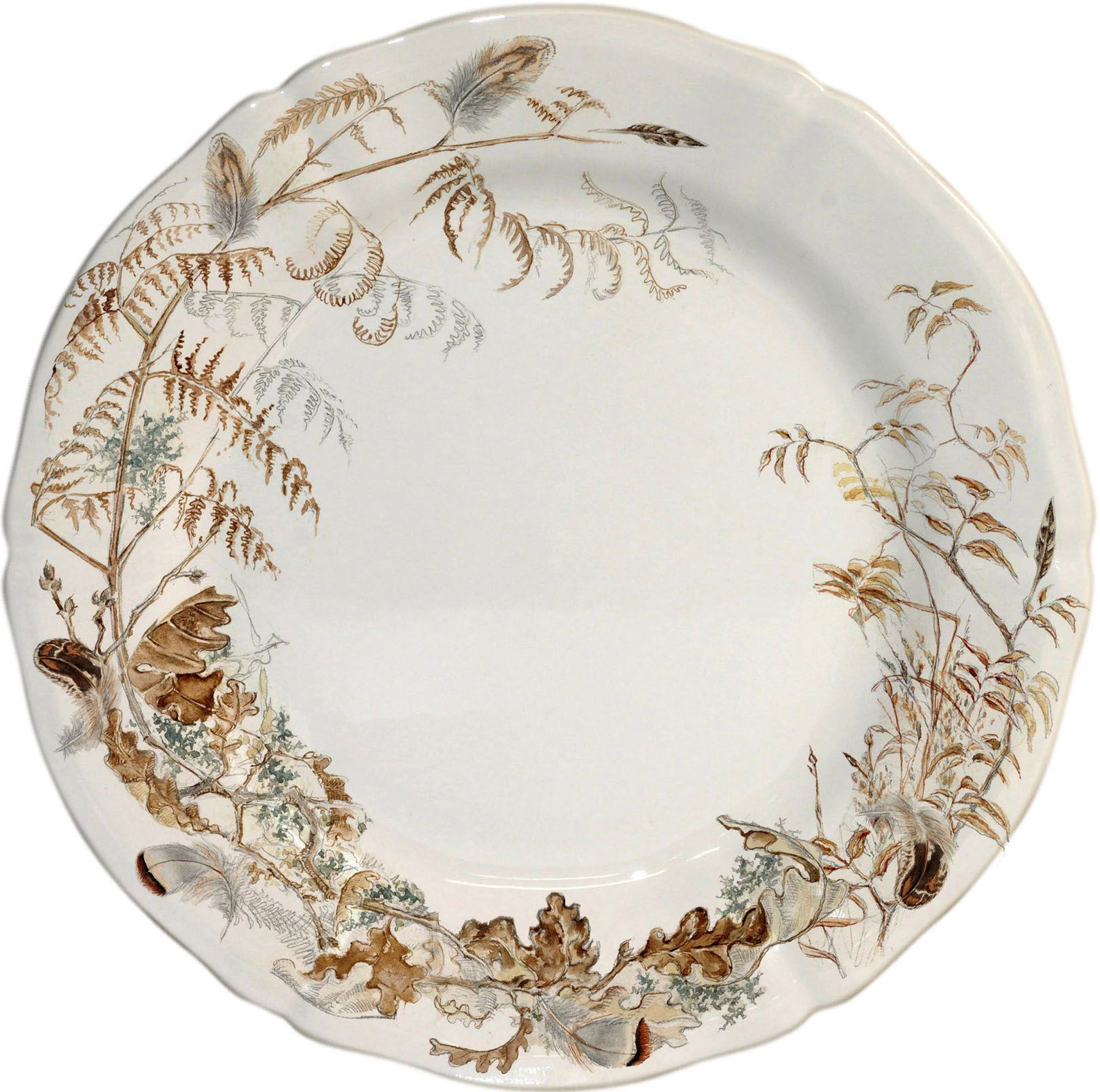 "Sologne" ist ein Entwurf von Estelle Rebottaro für Gien France und stellt Flora und Tiere naturgetreu auf der cremefarbenen Fayence dar.