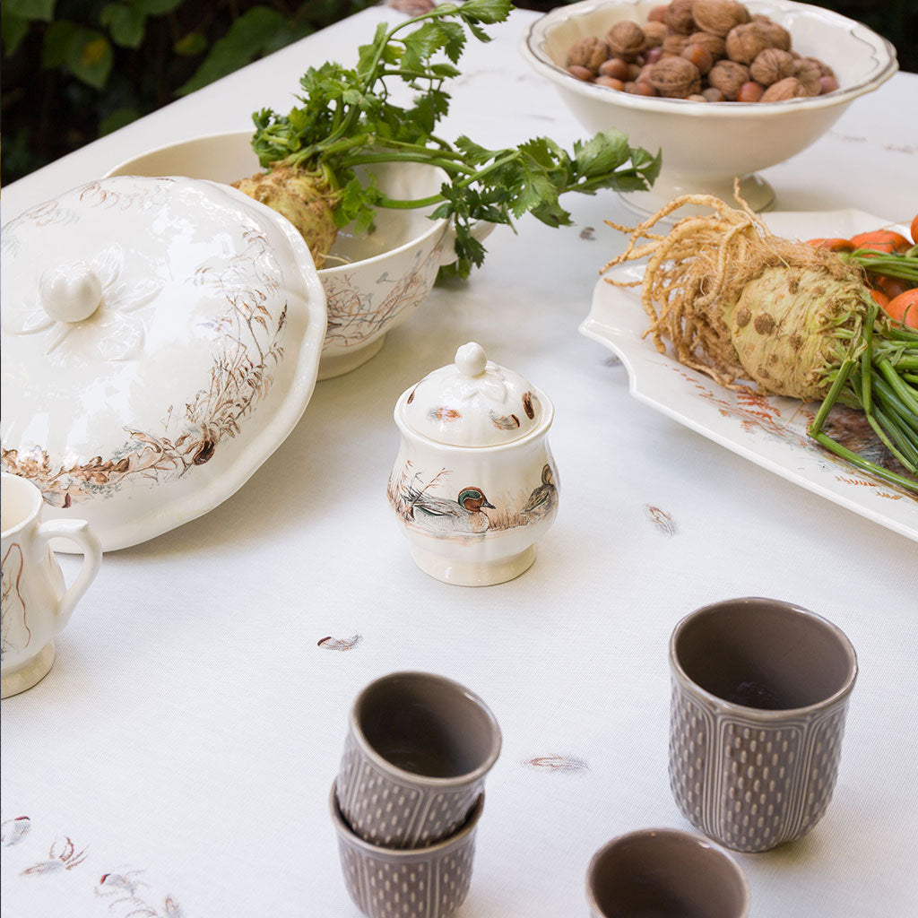 Das Tafelservice "Sologne" von Gien in den Farben creme/grau/braun lädt uns ein, die Flora und Fauna in der Sologne zu entdecken.