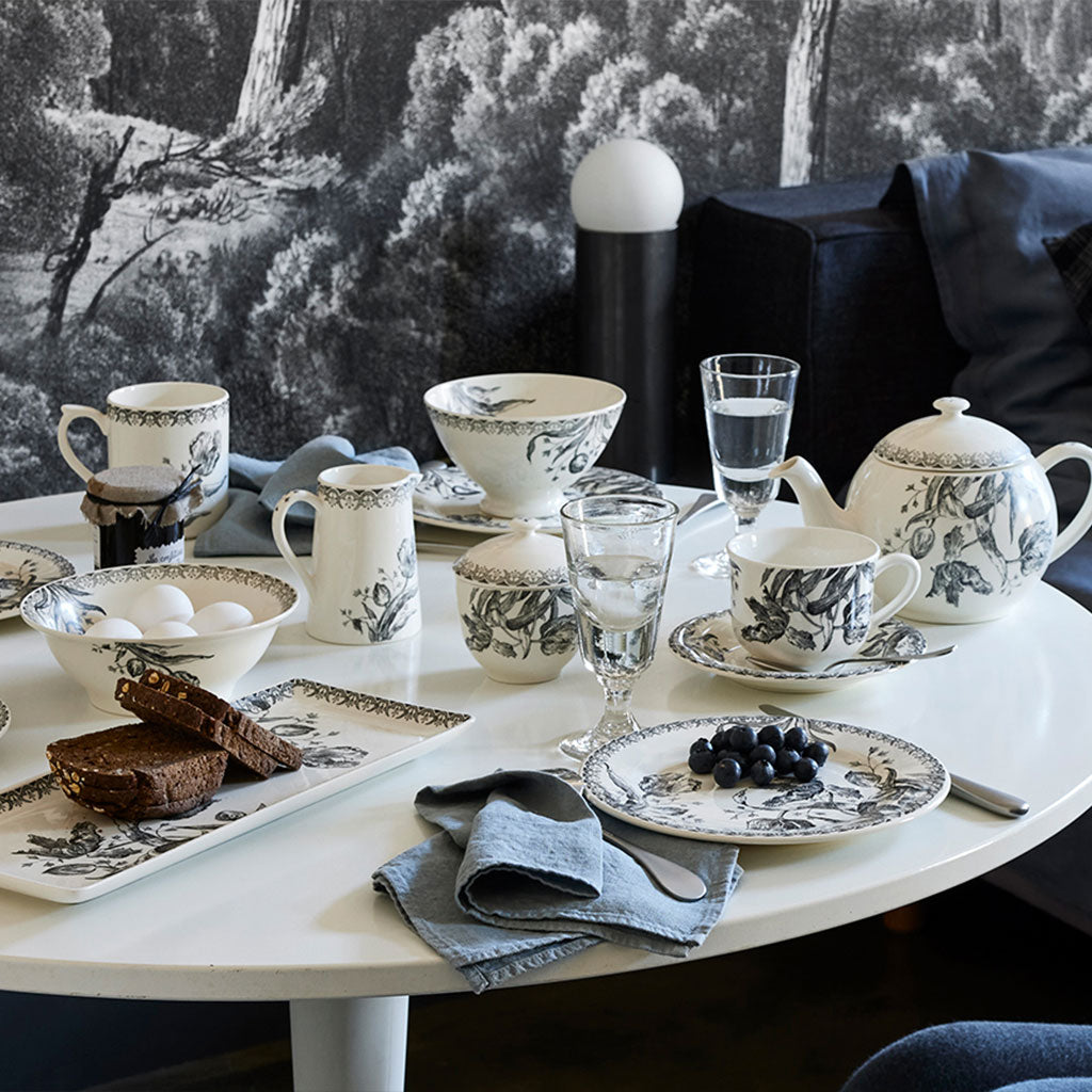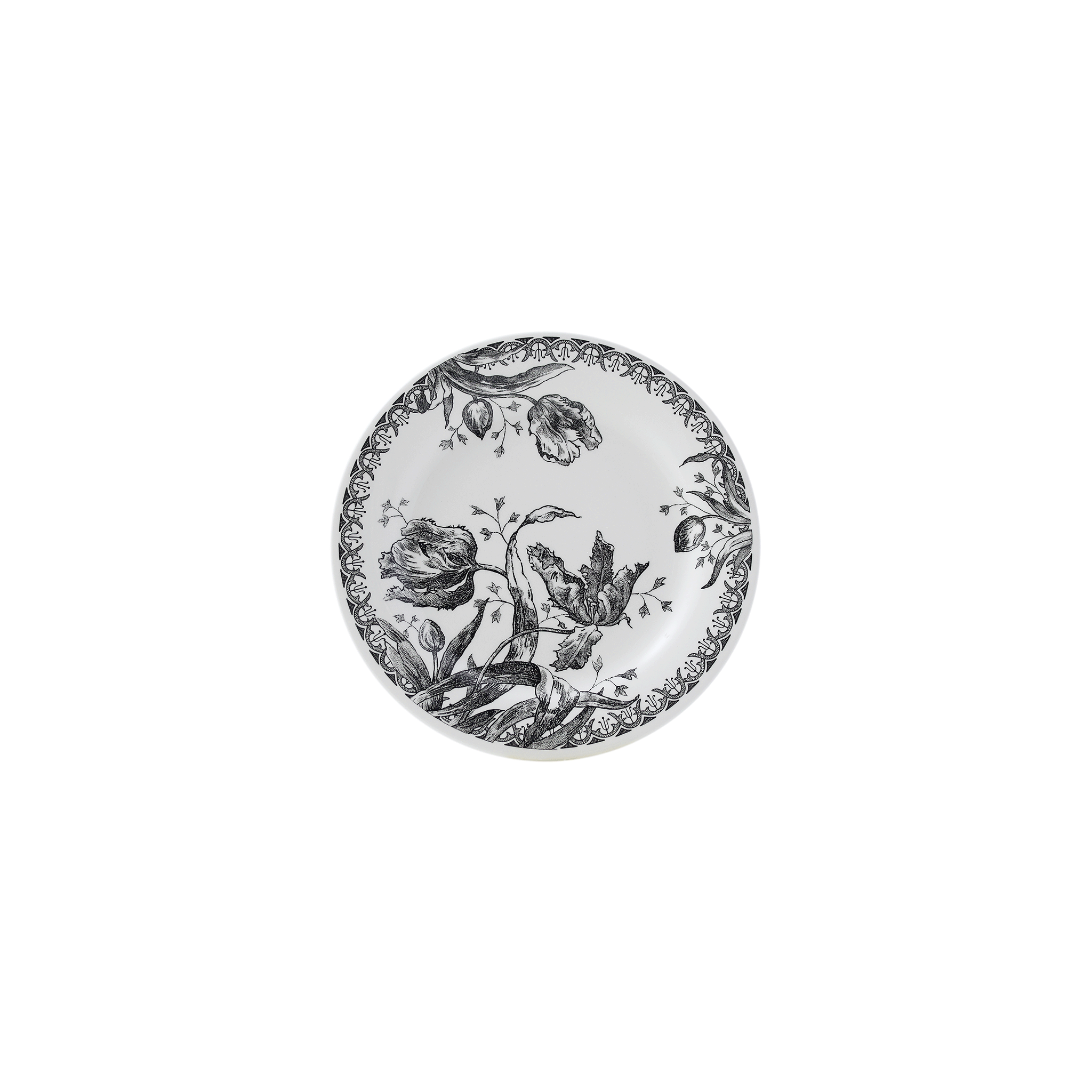 Konfiserieteller - Set ( 2 Stück ) oder Untersetzer aus der zeitlosen, extravaganten Frühlingsserie TULIPES mit einem Tulpenmotiv in schwarz.