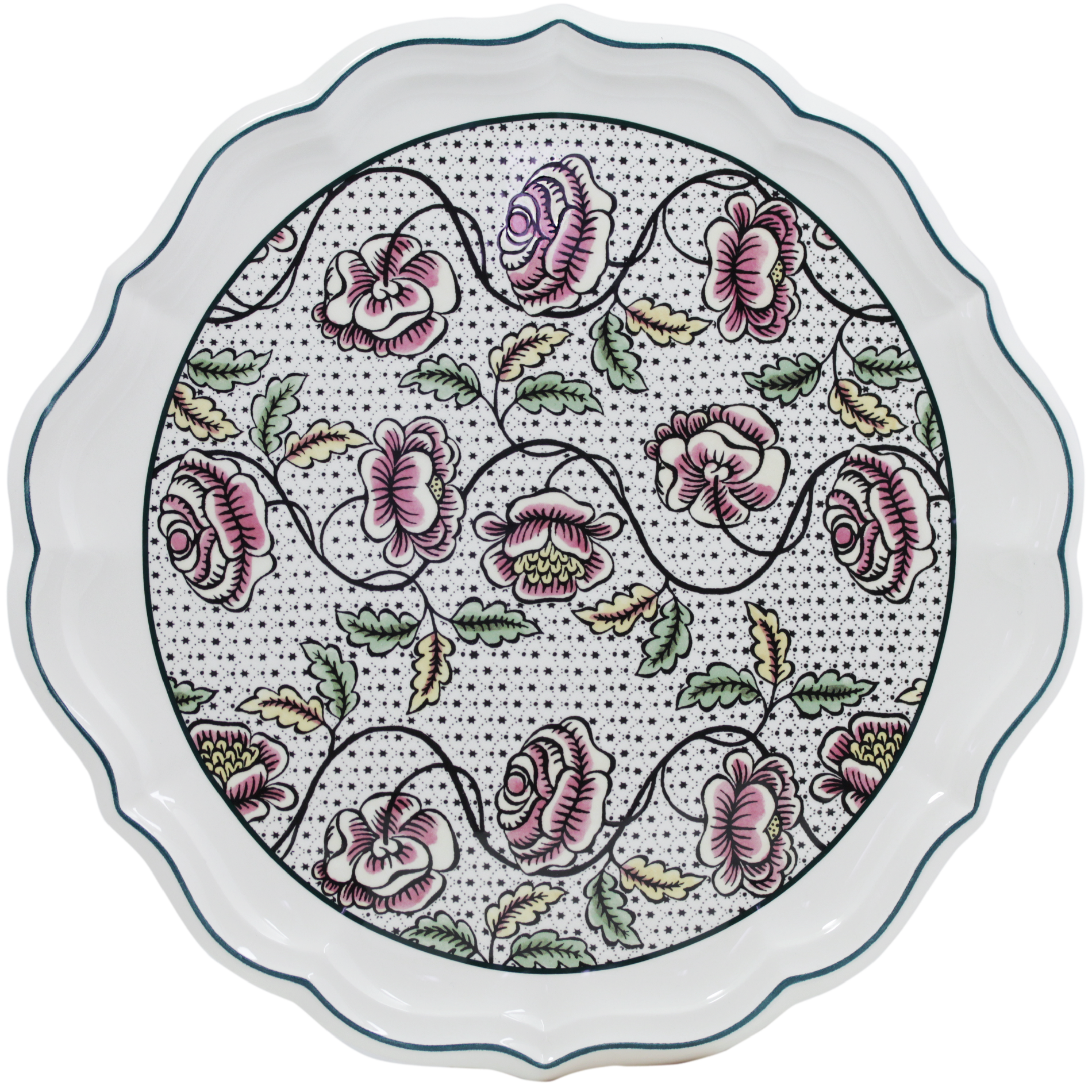 Die Torten / Kuchenplatte hat einen gewellten dunkelgrünen Rand. Sie hat einen Durchmesser von 31,7 cm.