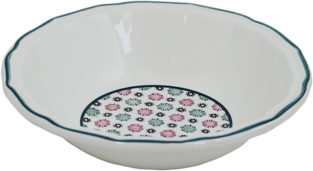 Das Obstschalen - Set ( 4 Stück ) hat einen dunkelgrünen Rand. Die Schale hat einen Durchmesser von 17 cm und ein Fassungsvermögen von 35 cl.