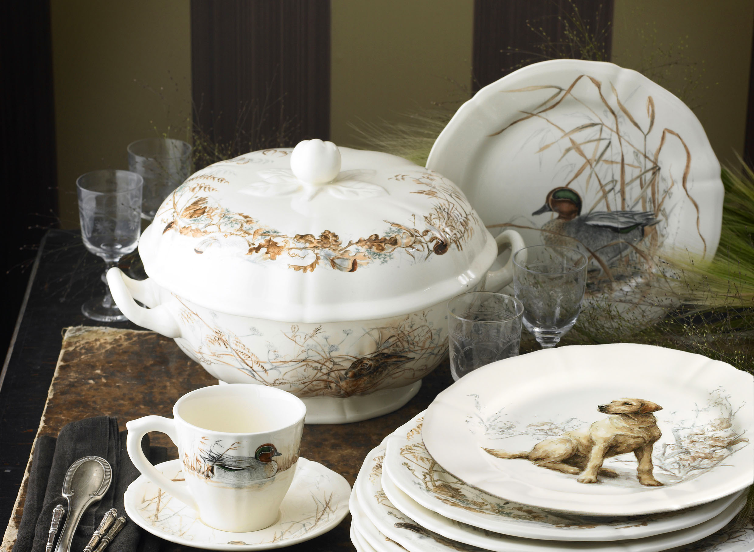 Das Tafelservice "Sologne" von Gien in den Farben creme/grau/braun lädt uns ein, die Flora und Fauna in der Sologne zu entdecken.