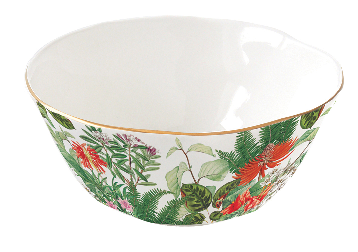 EXOTICA ist ein florales Dessin mit Vögel, Dschungelblüten und Blätter. Das Schälchen aus Porzellan hat einen Durchmesser von 12 cm. Das Set beinhaltet 6 Schälchen.