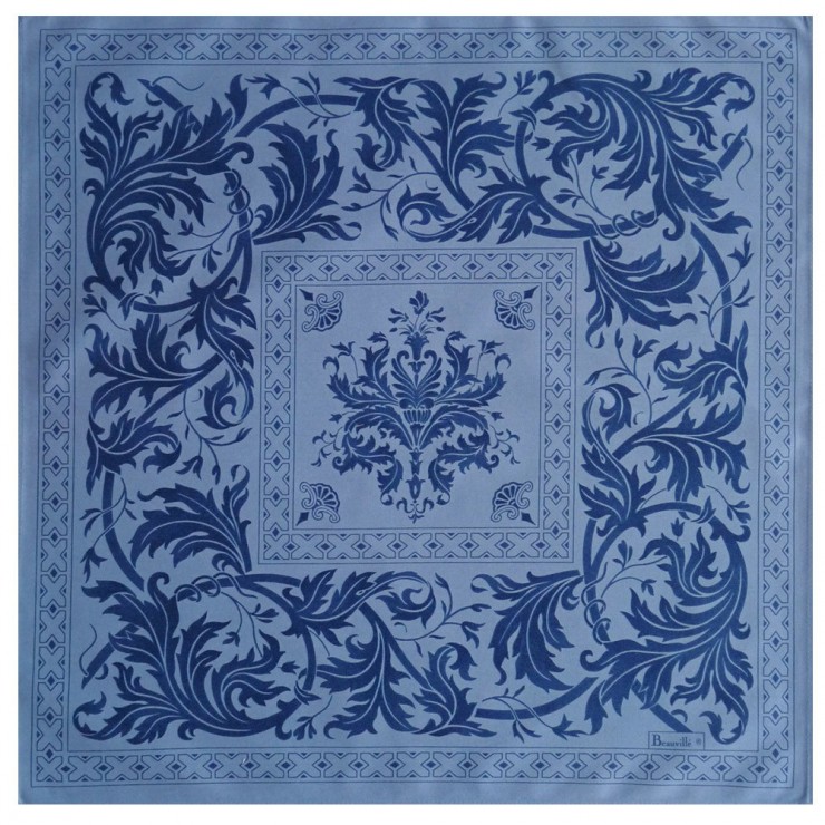 Allerfeinste und edle Tischwäsche von BEAUVILLE aus Frankreich. Die handgedruckten Servietten ( 4 Stück ) mit dem verschlungenen Motiv TOPKAPI in blautöne ( Farbname BLEU ) haben eine Größe von 55 x 55 cm. Sie sind aus reinem Baumwollsatin und bei 60° C waschbar. Erheben sie ihren Tisch zur Tafel mit diesem edlen Muster!